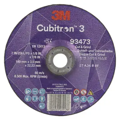 3M™ Cubitron™ 3 Cut and Grind Wheel, 93473, 36+, T27, 180 mm x 3.7 mm x 22.23 mm (7 in x 1/8 in x 7/8 in), EN, 10/Pack, 20 ea/Case