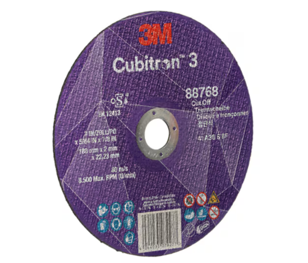 3M™ Cubitron™ 3 Cut-Off Wheel, 88768, 36+, T41, 180 mm x 2 mm x 22.23 mm (7 in x 5/64 in x 7/8 in), EN, 25/Pack, 50 ea/Case