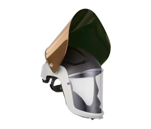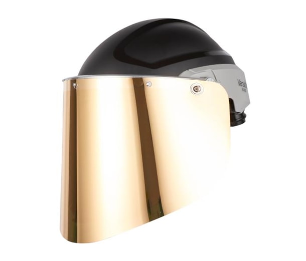 A viseira com revestimento em policarbonato fornece uma resistência acrescida contra riscos e agentes químicos |