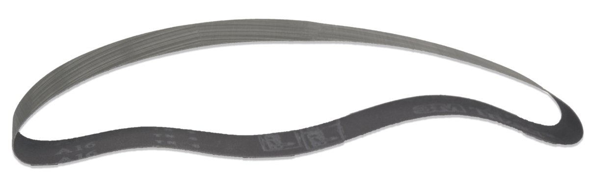 Cinta de lixa trizac cinza com 40 mm por 820 mm, ideal para trabalhos em metal.