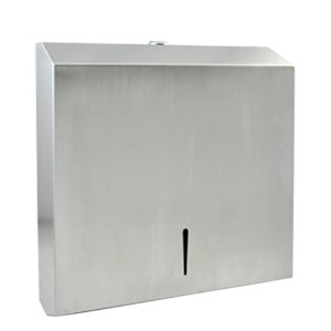 Dispensador de toalhas de mão em inox de instalação fácil com sistema de abertura por meio de chave e capacidade para 400 toalhas.